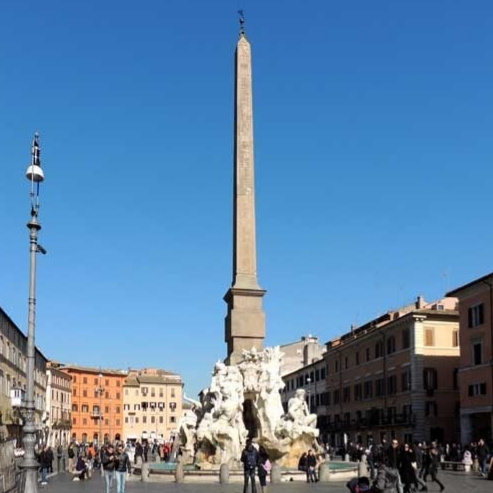 Back in 80 AD, it was called the Stadium of Domitian, but now it's the Piazza Navona. Showing a great example of Baroque Roman architecture. Filled with art from the time of the former leader of the catholic church, Pope Innocent X, who ruled from 1644 to 1655. He and his family lived in a palace named the Palazzo Pamphili, which faced the Piazza. In the center of the piazza is a famous fountain named the Fontana dei Quattro Fiumi (translates to the Fountain of the Four Rivers) which was made by Gian Lorenzo Bernini in 1651. Showcasing pieces from the Circus of Maxentius, and the Church of Sant'Agnese in Agone. In the center of the fountain features the tall Obelisk of Domitian. Some of the artists featured are Francesco Borromini, Carlo Rainaldi, Girolamo Rainaldi, and a few others.